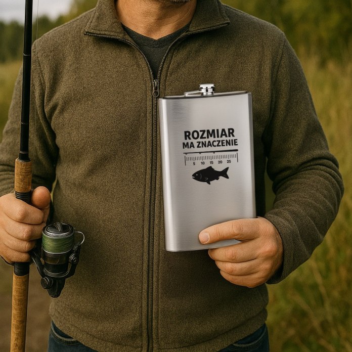 Piersiówka o pojemności XXL, zabawny prezent dla wędkarza.
